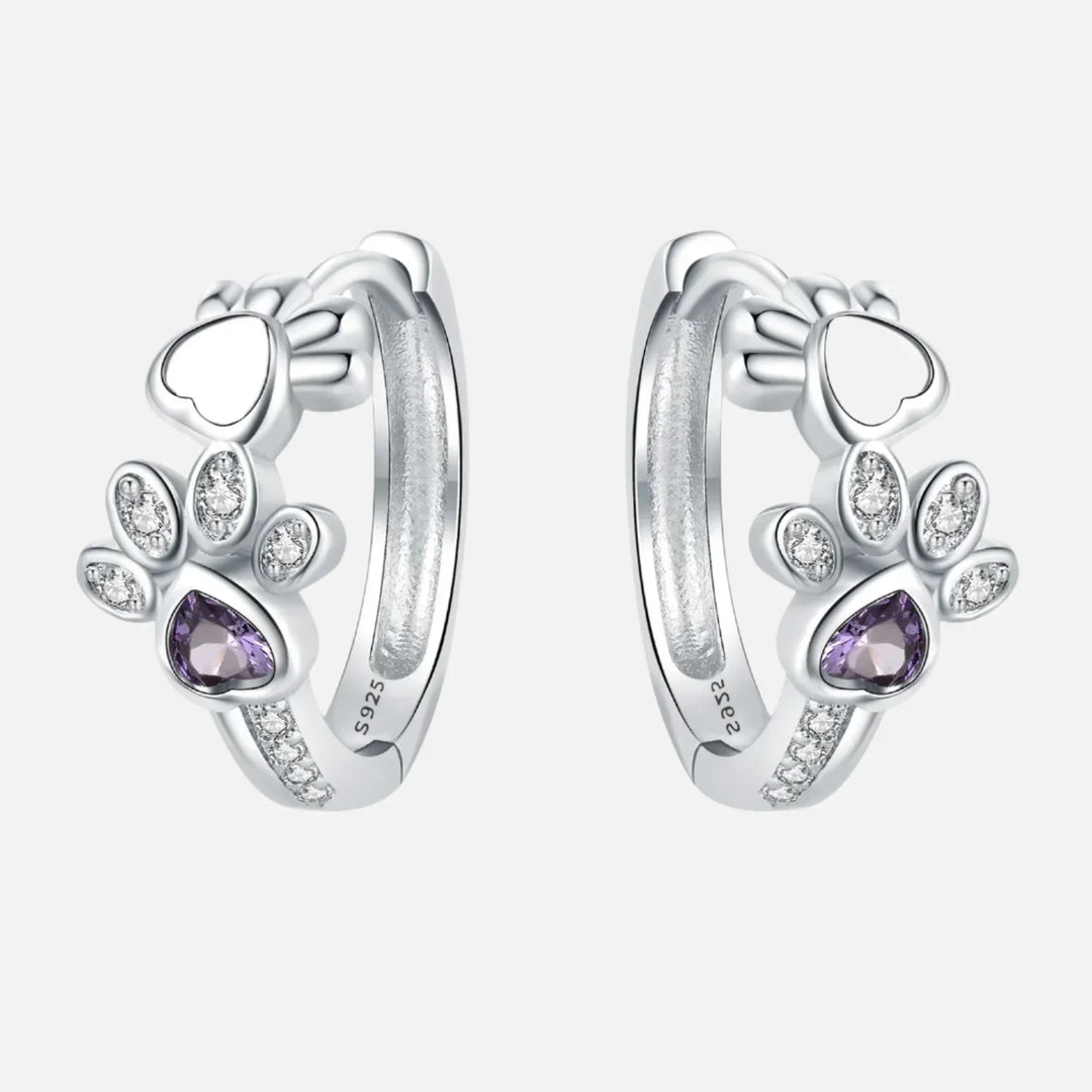 925 Sterling Silver Paw Huggie Earrings – Adorned with Zirconia and Heart Gem